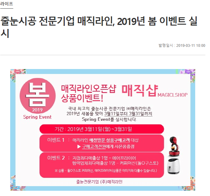이번 봄 이벤트는 매직라인상품판매 오픈샵인 ‘매직샵’에서 3월 31일까지 상품 구매 시 매장방문구매고객 전원에게 사은품을 증정하고,