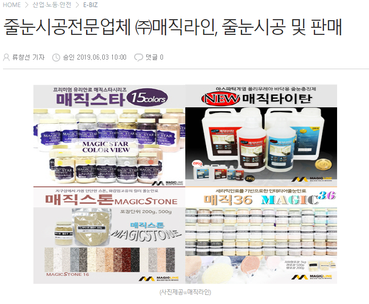 줄눈시공전문업체 ㈜매직라인, 줄눈시공 및 판매<환경일보>