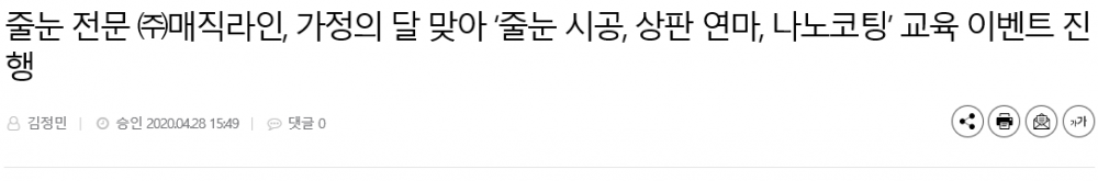 줄눈전문㈜매직라인, 가정의달 맞아 ‘줄눈시공, 상판연마, 나노코팅’ 교육이벤트진행<스마트경제>