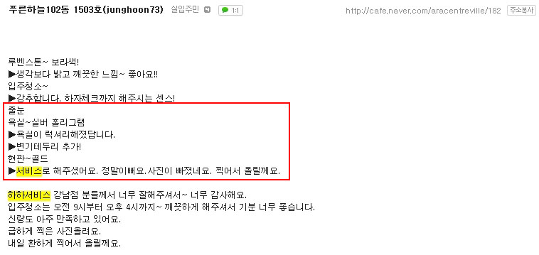 계양센트레빌 입주카페) 루벤스톤, 입주청소, "줄눈시공" (하하서비스) 했어요.